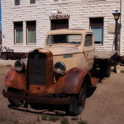 Another day of work for the kids and another day of sight seeing for us. This time we decided we were going to take 287 south towards Ft. Collins to Tie Siding. At that point we were going to take a dirt road over to Buford (population 1) and hopefully see some trains. Unfortunately there was construction going on and they had the road blocked that we wanted to travel. So we turned around and headed to Medicine Bow. There we found this old hotel and the truck that I imagine they used for transporting people and luggage.