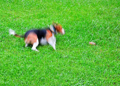 This morning I was in the back of the house and I heard Bubba going absolutely crazy. It was more than “there’s someone walking in front of my house or there’s a cat in my yard” crazy. So I walked in to find out what was going on–he saw a turtle in the grass. By that time Tommy had come in to see what Bubba was barking at. He decided to let Bubba go out, in the pouring rain mind you, to check out the turtle. It was hilarious! The first picture is Bubba barking at the turtle. He would circle around it and bark at it from all different angles.