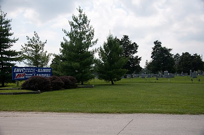 Tommy is always on the lookout for something out of the ordinary. Bubba and I were minding our own business (read: snoozing) when Tommy slowed down and made a u-turn and pulled into the driveway for the EnvoTech-Illinois Landfill. This is right next to a cemetery. Hmmmmmm….