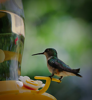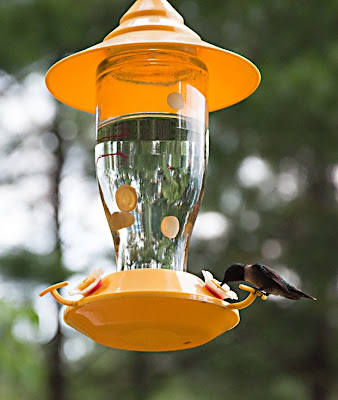 I finally caught a hummingbird at the feeder. Unfortunately, I didn’t have my longer zoom lens on the camera so it’s not as close as I’d hoped.