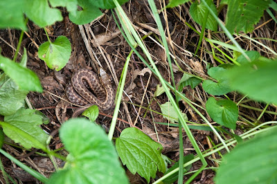 We stopped now and then so I could take some wildflower pictures. When I was trying to get close to one that was on a bank, I just happened to look down before I stepped. Thank goodness I did–this guy was waiting! But he never moved. Thank You God!