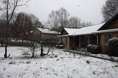Good thing for us that the weather has been warm lately and the ground is warm, otherwise we may have had a deep accumulation of snow. It has snowed a lot today with big, fat snowflakes. It’s been really pretty. Of course it’s really easy to comment on the beauty of snow when you are inside in front of a roaring fire!