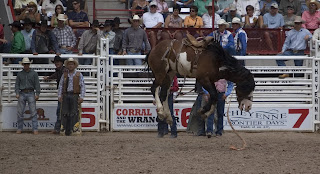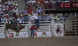 We had such a good time at the Cheyenne Frontier Days Rodeo last year that we bought tickets in January for this year’s rodeo. We decided to go on the Finals day this year. Before we got into the arena to see the rodeo, we had to bust these 2 out of jail. You just can’t take them anywhere without them getting into some kind of trouble! ;) This guy made the required 8 second ride!