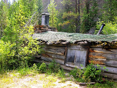 The next few pictures Tommy took on their walk. The first is an old dilapidated cabin. The second photo is Evan and the dogs hiking in good single line fashion. And the last is a shot of Douglas Creek.