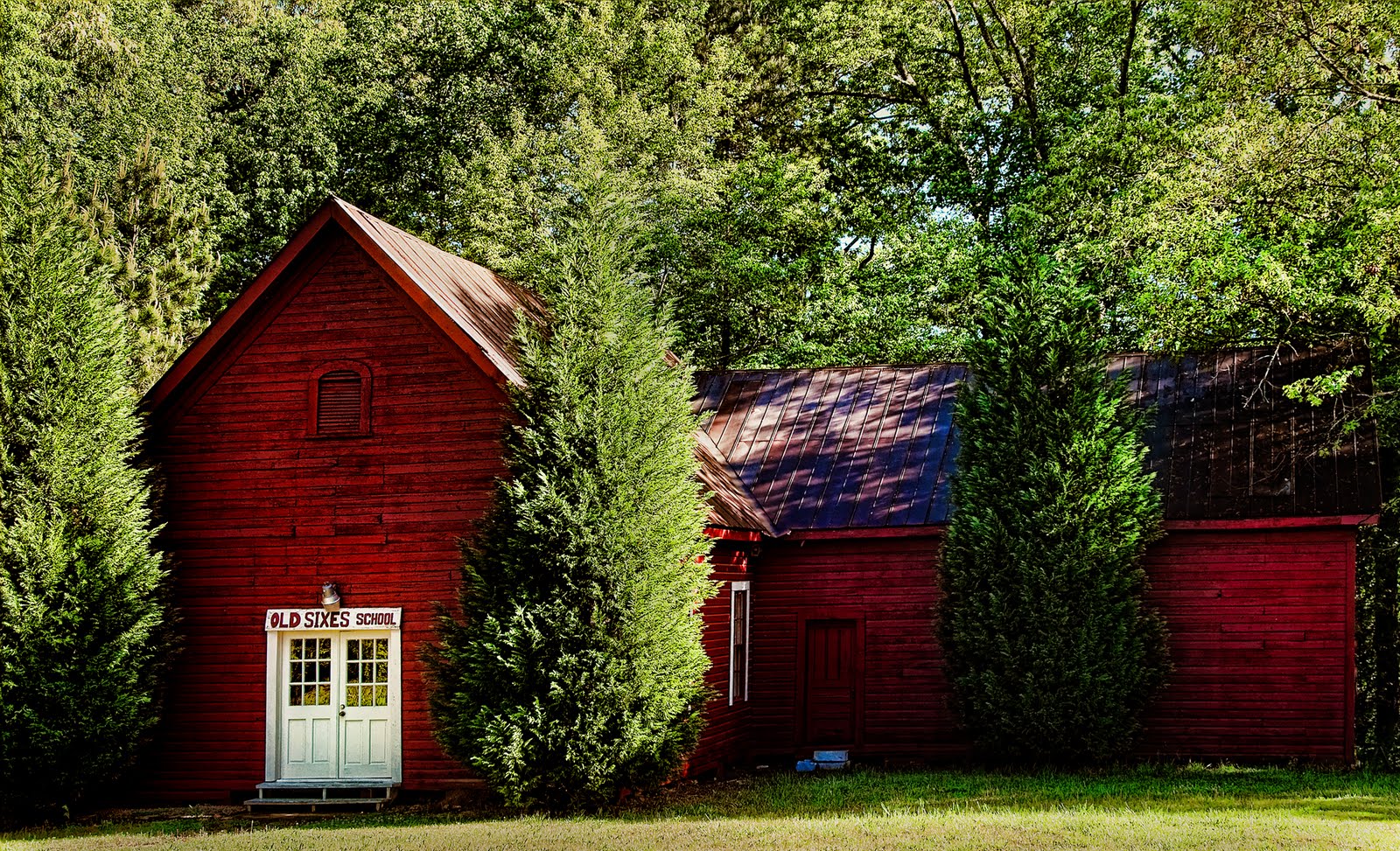 When we were with Aunt Alline and Uncle Bob last week they were talking about the Old Sixes School House which is not too far from the mill. On Sunday morning with nothing to do I drove over to find it. Once I remembered it was on Bells Ferry Road and not Ridge Road I found it.