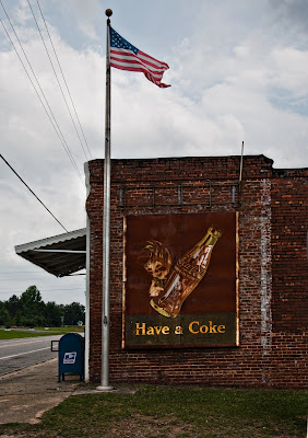 Last Friday my cousin Sue, my Aunt Alline and I headed to Savannah to visit my sister-in-law Chris. We were looking forward to a road trip and decided to get off of I16 south of Macon. Sue drove her truck since she has a cover for the back and the forecast was calling for rain. It did rain some as we were driving through Atlanta but then cleared up. Before we got out of Macon we stopped at the Cracker Barrel for lunch. I think that might have been the second time I’ve eaten there. I know that a lot of people like Cracker Barrel, but I’m just not a fan. We then drove a bit south and got off of I16. While driving south on Hwy. 15/29, we went through Tarrytown. As we did we saw this really cool old Coca Cola sign on the side of an old post office. We had gone on by and Sue decided we really needed to go back to take some pictures.