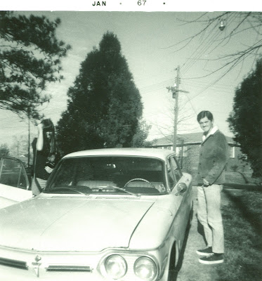 Even though Terry was the driver this particular day, the Corvair was not his car. It was the family car and the one that we traveled across country in (California to Georgia). There were 4 of us who made that trip. A long, long way in a little car. This is also the car that I learned to drive with.