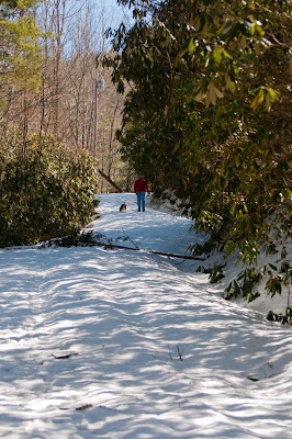 We planned on spending a few days in BG and drove up today. We really needed to check on the house after all the cold and snow. We saw snow on the road going into BG, but there wasn’t much…….until we got to our road. The bridge over the river hadn’t been cleared, but had been driven on. We didn’t get much farther than the far side of the bridge. There was probably 6+ inches of snow on top of the frozen ground. There was no way we were going to be able to drive up to the house. There was no sign that either Albert or Cleon had gone up the road. So Tommy, Bubba and I walked up to the house to make sure everything was OK there. It was. But, since we couldn’t get our supplies up to the house we turned around and came back home. :(