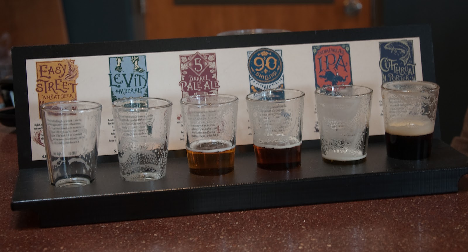 This is one of the samplers that we got at Odell. Notice the Easy Street glass is empty–Sara and I shared that one.