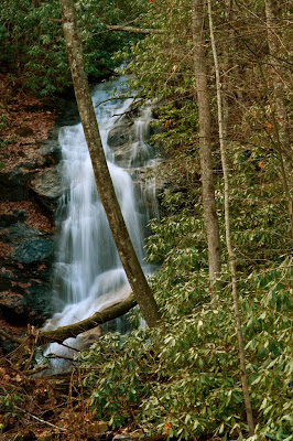 This is Cathey’s Creek Falls. We drove past the trail for these falls and had to turn around and go back. Along the way, we stopped and asked an old fellow where the trail was. He pointed just up the road a bit and said, “It’s a really steep trail down to the falls.” He was right. Tommy estimated that the drop down was about 100 feet. I didn’t whine or cry once! :)